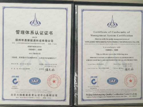 揚州明晟新能源科技有限公司坐落于素有“東方郵都”美稱的高郵,地理位置優越,現有員工150人,其中博士3名,中高級技術職稱15名,并且有一支高素質的管理隊伍,積累了豐富的生產、管理經驗,配備多條先進生產線,生產技術位于同行領先水平,是集研發、生產和銷售于一體的專業化公司。公司與《德國萊柏尼茨新材料研究所》技術研發團隊合作,其中2名專家獲得德國“洪堡基金”一等獎,其中光之吻“系列產品生產技術與國內知名高校開展產學研合作,該技術產品應用于室內、車內甲醛、苯、甲苯、二甲苯、TVOC高效并持久性降解,生產技術已經處于世界領先水平AR高增透玻璃技術成果成功地實現產業化。